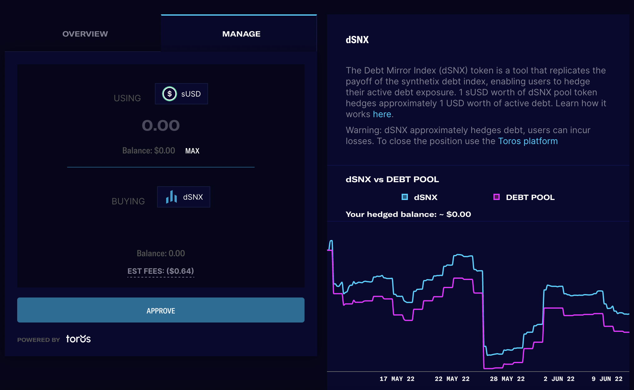 - dHEDGE & Toros Finance tool that helps automate SNX stakers’ debt management by automatically mirroring debt pool on Optimism.