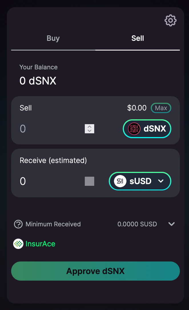 All a staker must do is navigate to the Synthetix Staking website’s debt section and purchase the dSNX token through the UI which is integrated into the ‘Manage Tab’. 1 sUSD worth of debt mirror token will hedge one sUSD worth of debt. Make sure you're connected to Optimism!