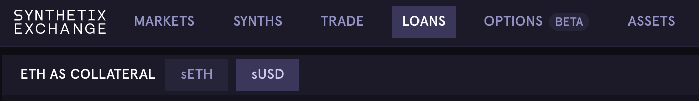 To take out a loan against your ETH, visit the 'Loans' tab in Synthetix.Exchange, and make sure to toggle 'sUSD' instead of sETH.