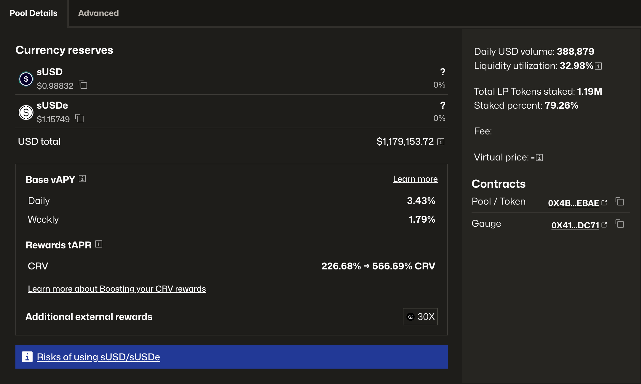 Providing liquidity in DeFi comes with risks, including smart contract vulnerabilities and impermanent loss. LPs should evaluate risks before depositing. Learn More About Curve Pool Risks