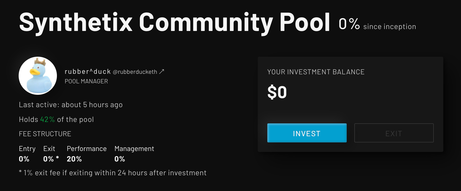 You can invest alongside rubber^duck now by visiting the live Synthetix Community Pool on dHEDGE.