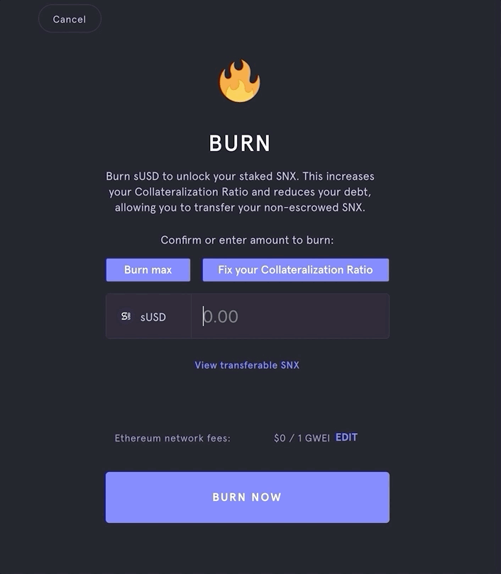 Whenever you burn some sUSD, you'll now have the option to preview how many staked SNX will be unlocked as a result of your action. This provides far greater clarity to stakers who are looking to unlock some or all of their SNX.
