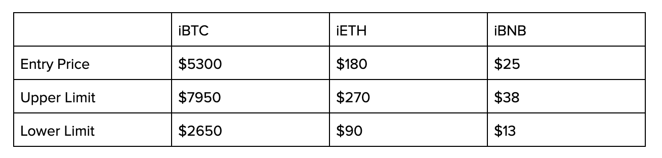 We’ll use iBTC as an example. The value of iBTC will be inverse to the value of BTC with relation to the entry price of $5300. This means that if the value of BTC is $5100, the value of iBTC will be $5500.