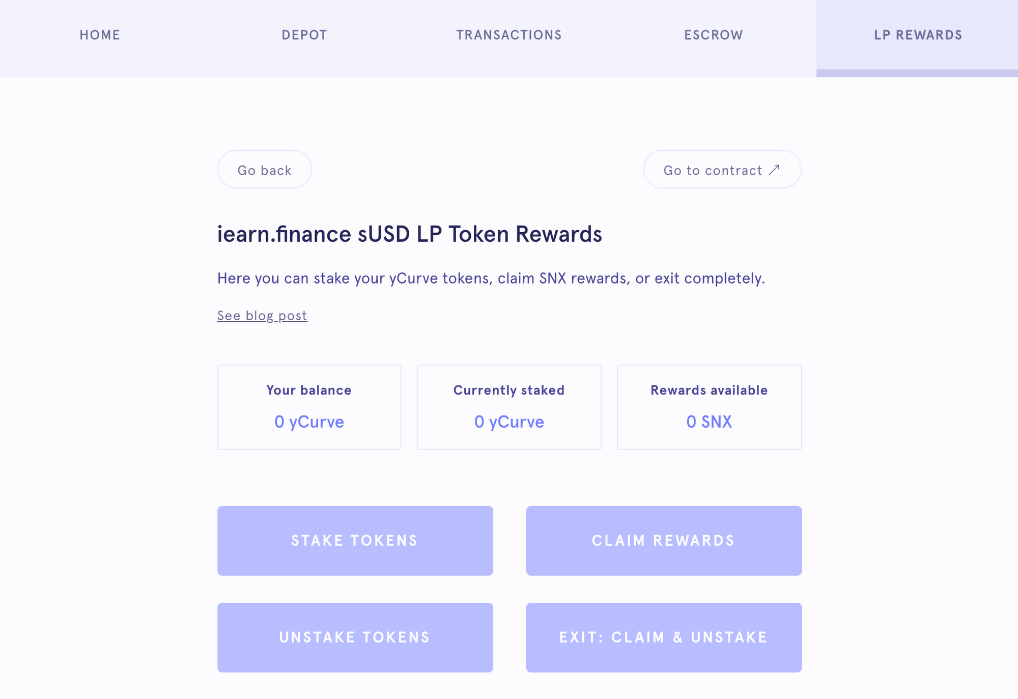 If you are contributing sUSD liquidity on Curve to earn SNX rewards, then you first staked your Curve liquidity tokens (yCurve) into the staking contract on Mintr. To withdraw, select the “Exit: Claim and Unstake” option.