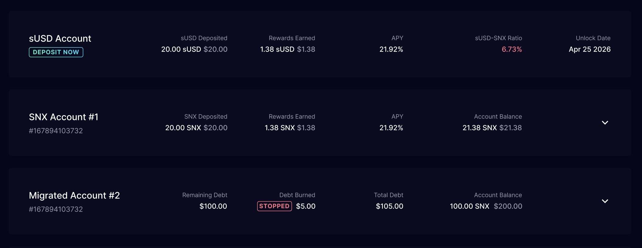 - NOTE: your sUSD deposits will be fully locked for 12 months, they cannot be withdrawn.