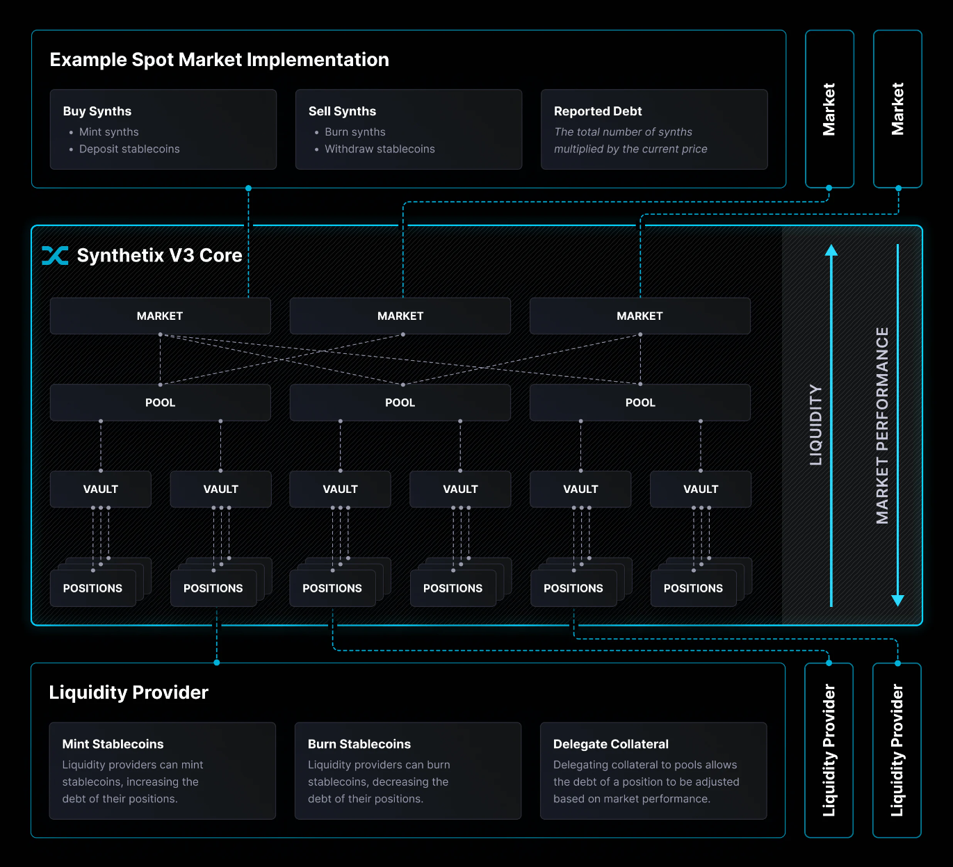 This diagram provides a high-level overview of the Synthetix V3 architecture: