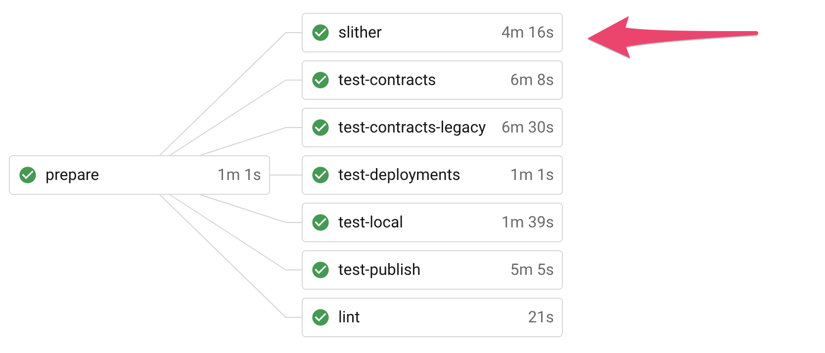 While we rely heavily on both thorough testing and contract audits, we've yet to incorporate static analyzers or fuzzers into our testing suite. Well, we've kicked this off with CI integration of slither. We're still in the process of customizing the output and generating visual artifacts to go alongside our docs, stay tuned for more on this.
